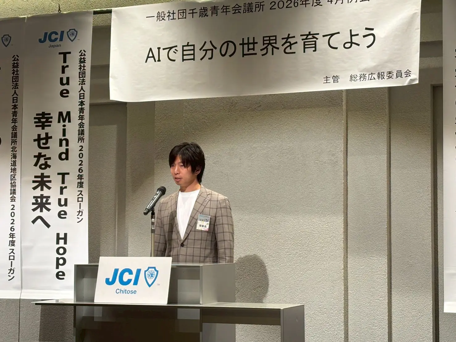 昨日、一般社団法人千歳青年会議所では、総務広報委員会主管で4月例会「AIで自分の世界を育てよう」を開催いたしました。